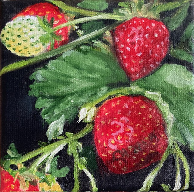 Aardbeien, afm. 10 x 10, beschikbaar.